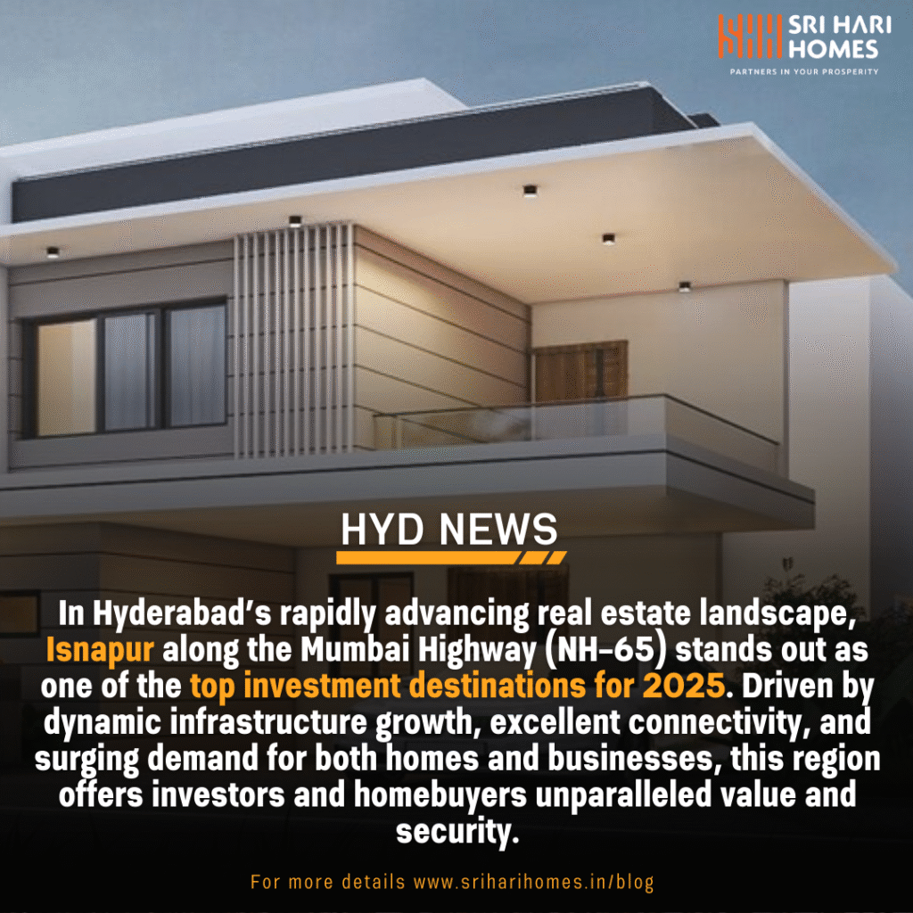 Introduction In Hyderabad’s rapidly advancing real estate landscape, Isnapur Patancheru along the Mumbai Highway (NH-65) stands out as one of the top investment destinations for 2025. Driven by dynamic infrastructure growth, excellent connectivity, and surging demand for both homes and businesses, this region offers investors and homebuyers unparalleled value and security. Strategic Location and Connectivity […]